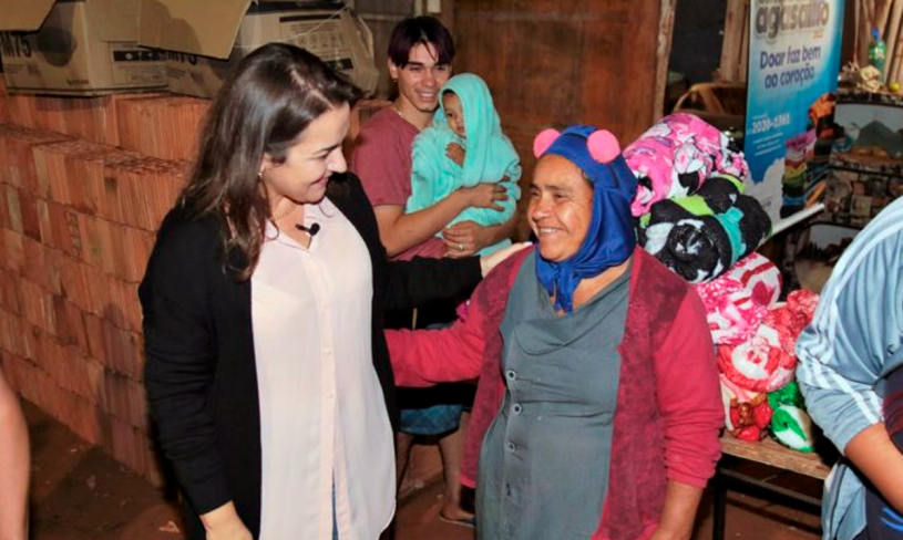 A prefeita de Campo Grande, Adriane Lopes, deu continuidade às entregas da Campanha do Agasalho nesta terça-feira (31) e levou cobertores para moradores dos bairros Santa Emília e Santo Eugênio. Desde o início das entregas, o Fundo de Apoio à Comunidade (FAC) já entregou 5,3 mil cobertores. A meta para 2022 é dobrar as doações da campanha passada e chegar a 30 mil cobertores.