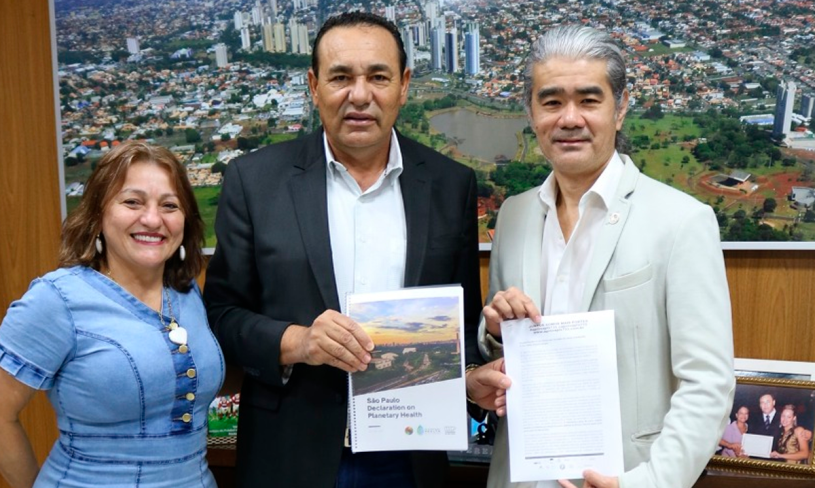 O vereador Carlos Augusto Borges (Carlão PSB), presidente da Câmara Municipal de Campo Grande Hoje, recebeu em seu gabinete na Casa de Leis, a visita do fisioterapeuta Marcos Mitsuo Moriy, Embaixador do Instituto Lixo Zero Brasil, que concedeu ao presidente do Legislativo Municipal o Título: Atitude Cidadã 2021, como exemplo que inspira. Mitsuo também entregou ofício em nome da União de 15 Sindicatos de Fisioterapia e Terapia Ocupacional do Brasil (Sinfitos), solicitando apoio para aprovação do Projeto de Lei 1731/2021 – referente ao piso salarial da categoria que tramita no Senado Federal.