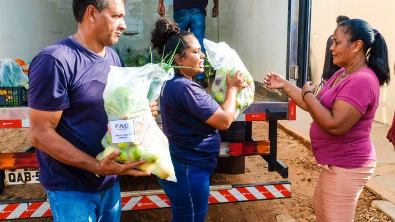 Foi de caminhão com câmera fria carregado de hortaliças e frutas como laranja, limão, batata, beterraba, alface e outros itens, que a Prefeitura de Campo Grande distribuiu na tarde dessa terça-feira (24), cestas de alimentos para as mais de 100 famílias dos bairros Vespasiano Martins, Parque do Sol e pessoas assistidas no Projeto Oásis – Centro de Recuperação para Mulheres, no Jardim Manaira.