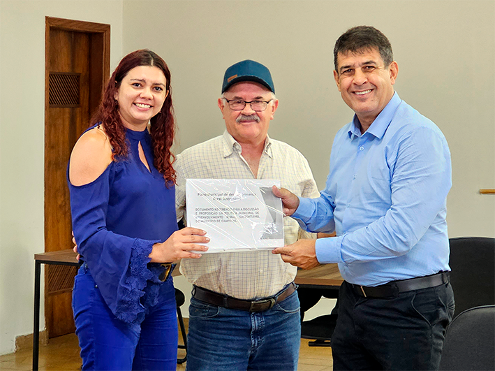 A entrega da proposta ocorreu durante a última reunião de 2023 do CMDRS. A presidente do Conselho e gerente de Fomento a ATER e a Organização da Produção Primária da Sidagro – Secretaria Municipal de Inovação, Desenvolvimento Econômico e Agronegócio, Mariana Coura, fez a entrega do documento juntamente com o professor Ivo Busato, da Universidade Anhanguera Uniderp.